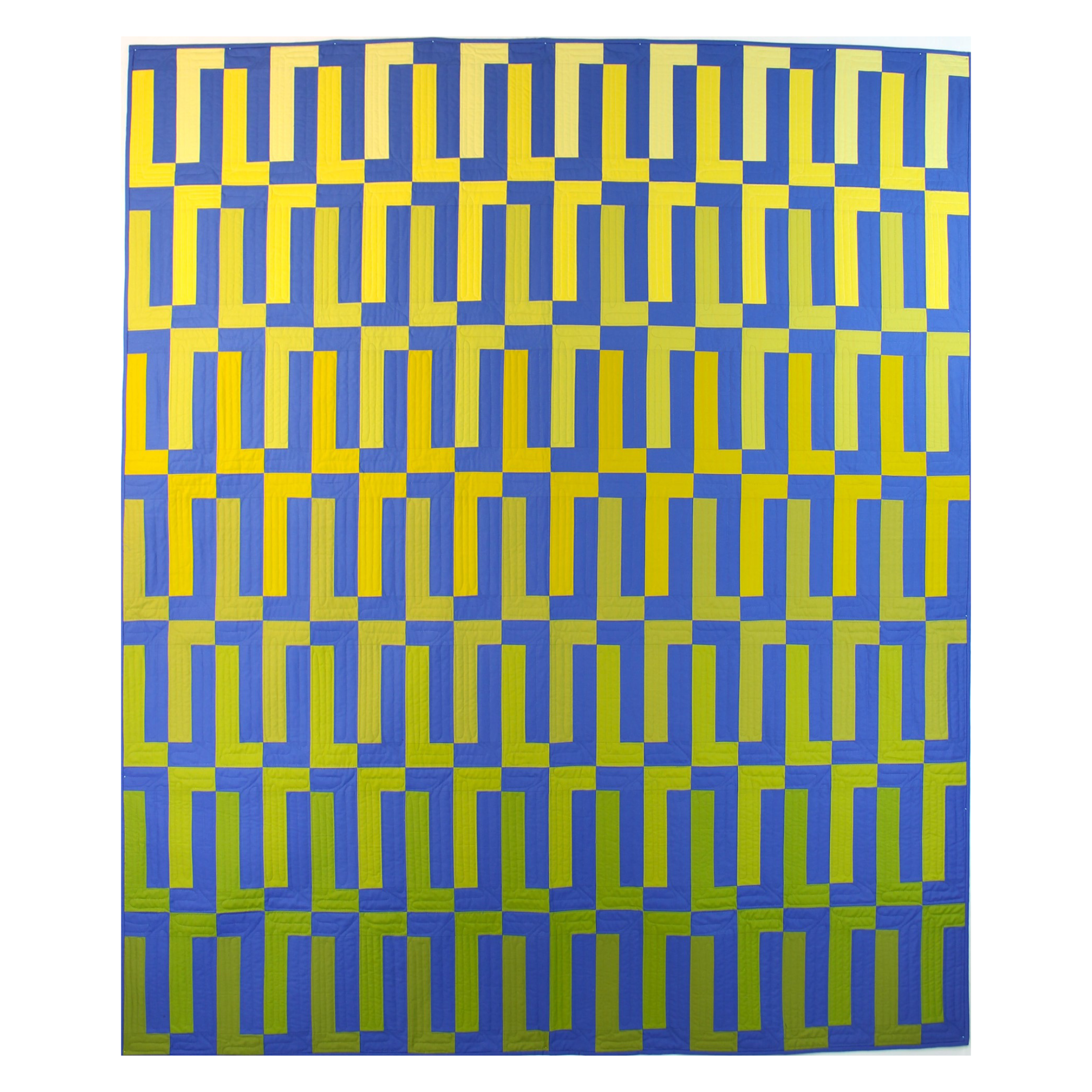 October Forest captures the quiet shift into autumn—the moment when green begins to give way to gold and the air finally feels clear again. The design uses strong vertical columns inspired by forest trees and early seasonal color changes. Simple block construction makes this pattern approachable, while thoughtful color placement brings it to life. October Forest can be made as a soft color gradation or as a striking two-color quilt—both versions are fully detailed in the pattern with layout and yardage guidance.