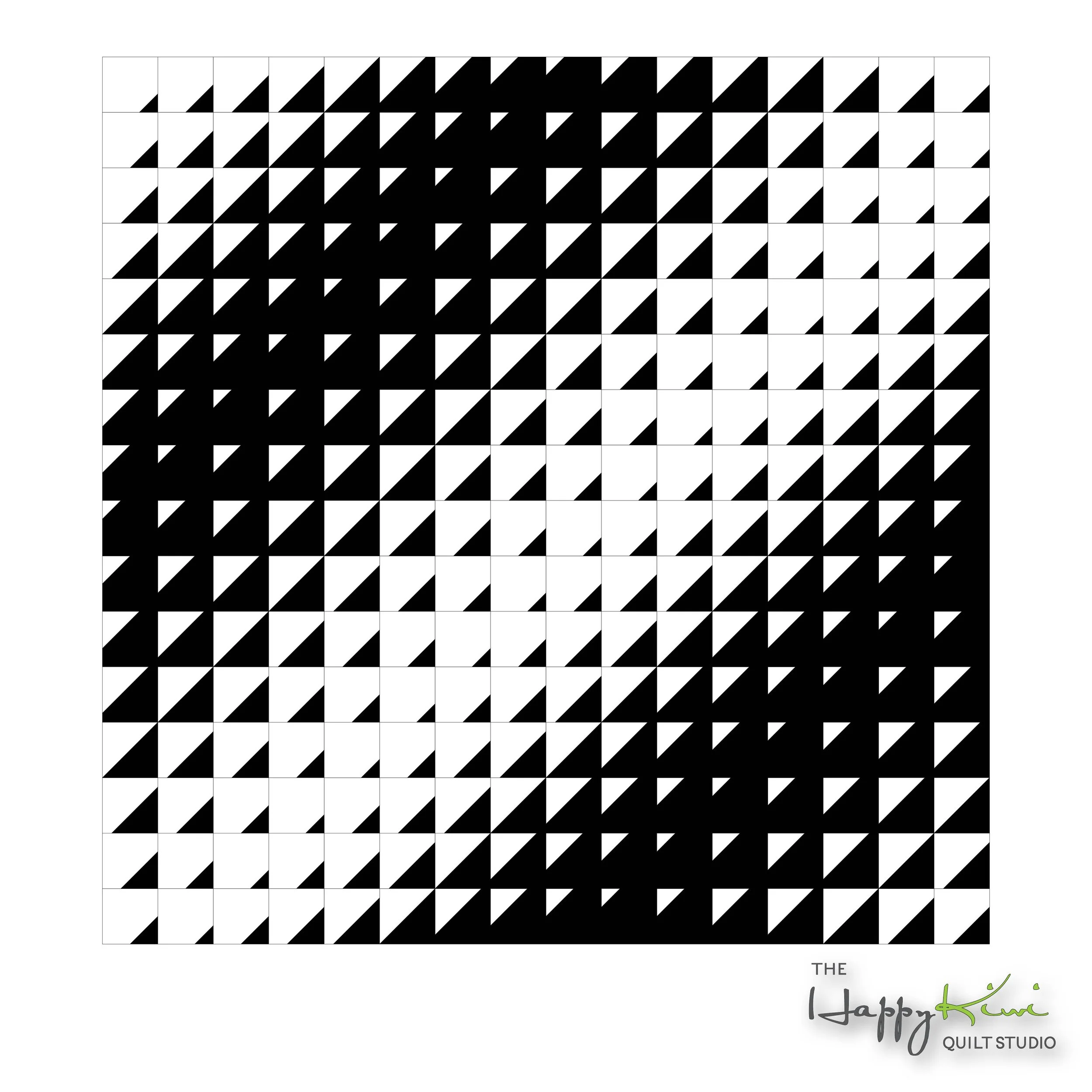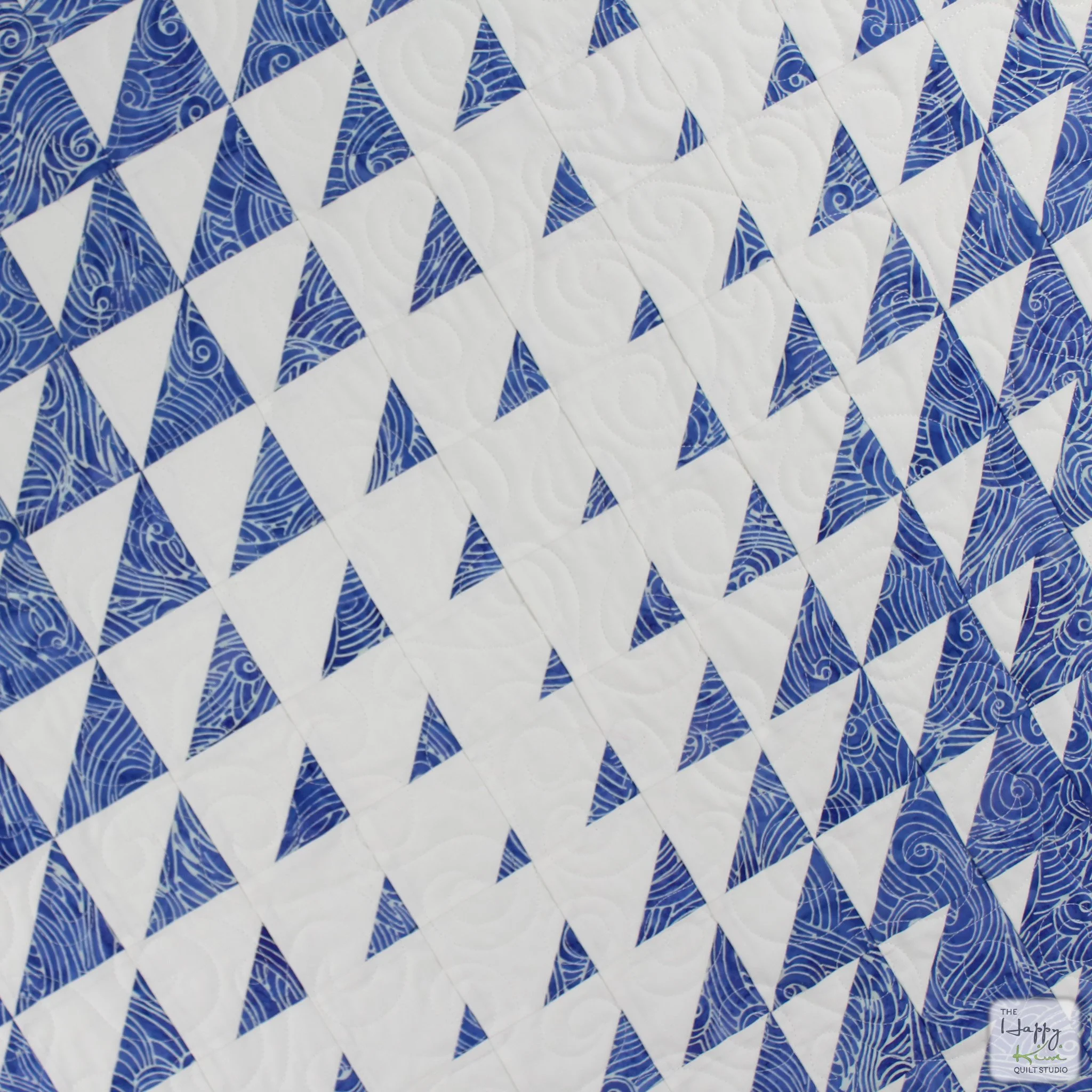 The pattern comes together using corner triangles and a simple layout that grows more striking as the quilt size increases. In throw size, it’s rhythmic and cozy; in Queen or King size, it becomes immersive—like watching an entire tide roll in. You can go bold with deep blues and high contrast, or lean into soft neutrals for a more meditative effect.